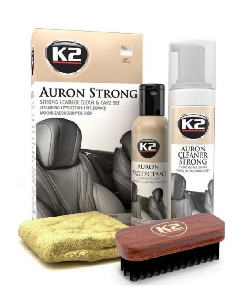 O conjunto K2 Auron Strong contém quatro produtos excepcionais, especialmente desenvolvidos para dar nova vida a estofados de couro desgastados e sujos, protegendo-os contra rachaduras. A utilização de uma excelente formulação e formato do produto foi fundamental para garantir a máxima eficiência aliada à facilidade de uso. Não importa o quão bom você seja com cuidados com o carro – o conjunto K2 Auron Strong ajuda a remover de forma rápida e fácil até mesmo a sujeira mais persistente.